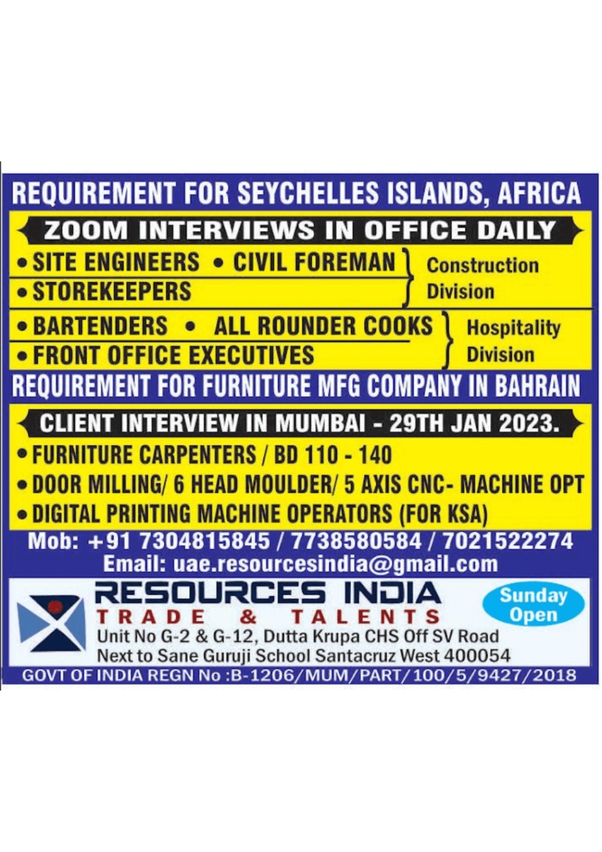 ๐Ready the ad to know more about the vacancies and the qualifications / Experience reqd. | Read the Ad carefully before you apply